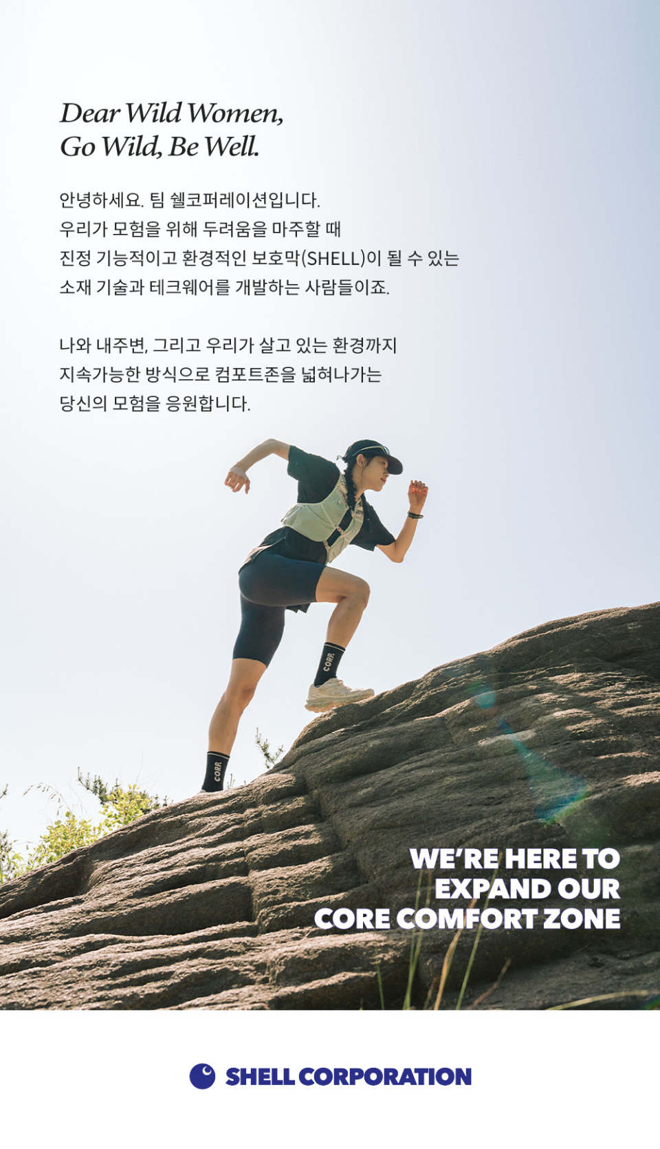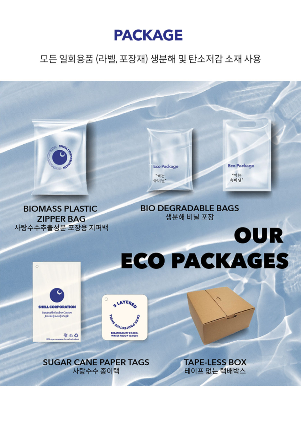 쉘코퍼레이션(SHELL CORPORATION)은 천편일률적인 아웃도어에 지루함을 느낀 팀이 모여 만든 친환경 아웃도어 브랜드입니다.