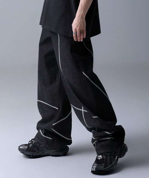 DIVIDED DOUBLE KNEE PANTS - BLACK