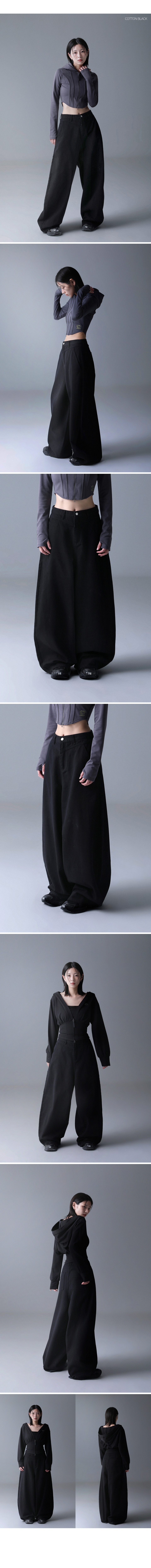 커브드 사이드 핀턱 벌룬 스웨트팬츠 GLP-650_블랙