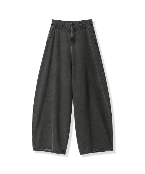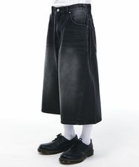 워싱 커브드 버뮤다 데님 팬츠[블랙]