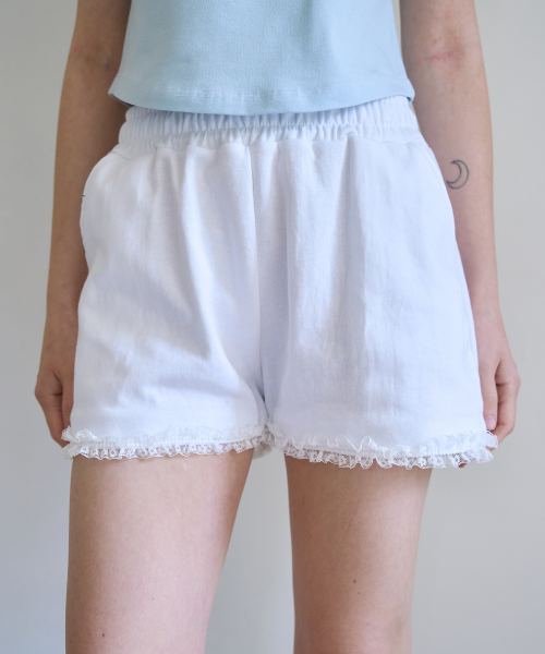 레이스 밴딩 쇼츠 팬츠 (화이트)