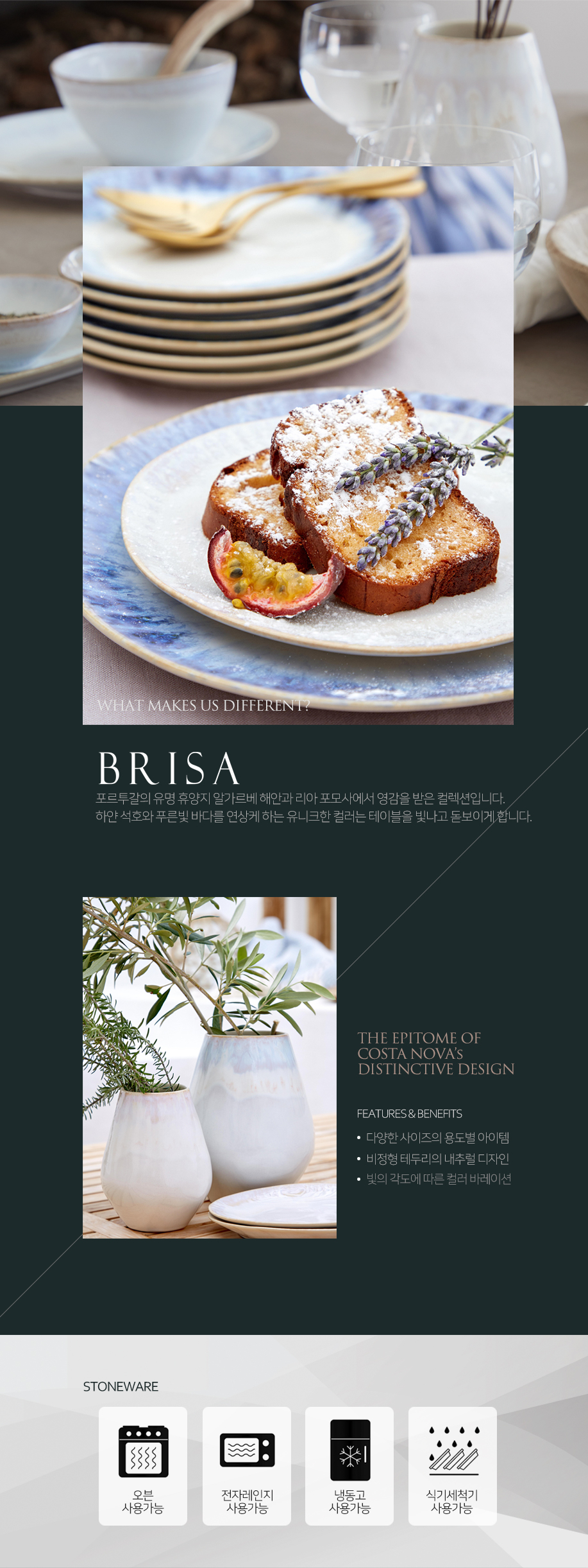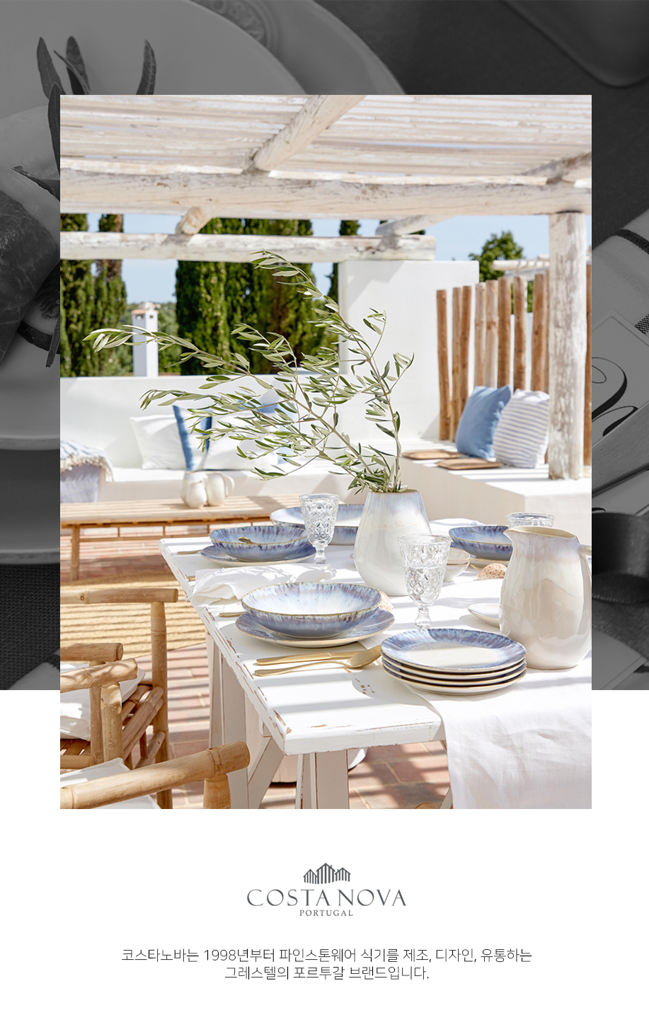 코스타노바(COSTA NOVA)는 세계적인 도자기 전문 기업 '그레스텔'이 1998년에 만든 포르투갈의 대표 브랜드입니다. 포르투갈의 우수한 천연 자원과 도자기 장인들에 의해 탄생하여, 삶의 가치와 가족 또는 친구들과 함께하는 행복을 담아 제작합니다. 지중해의 풍부한 감성으로 고객의 라이프 스타일을 더욱 풍요롭게 합니다.