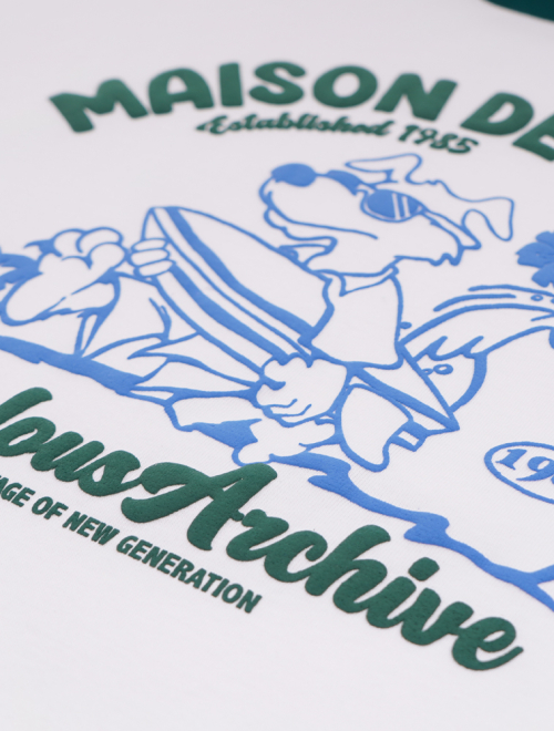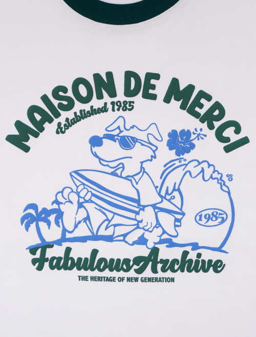 UNISEX 오버핏 퍼피서핑 링거 반소매 티셔츠 화이트그린(FCE2TS401M)
