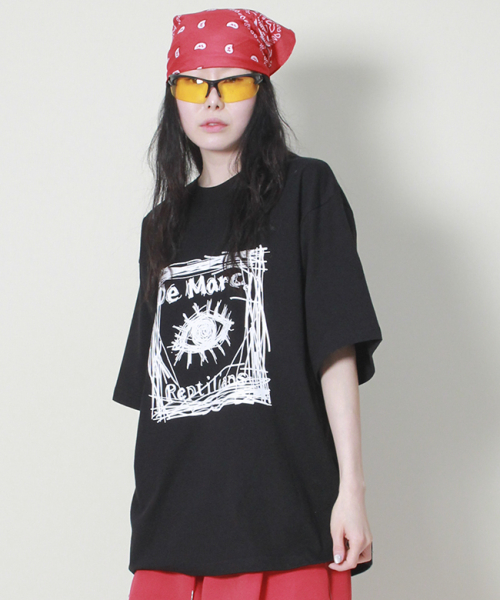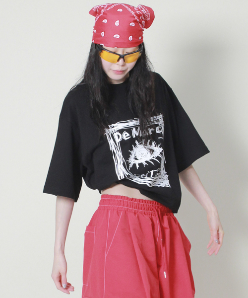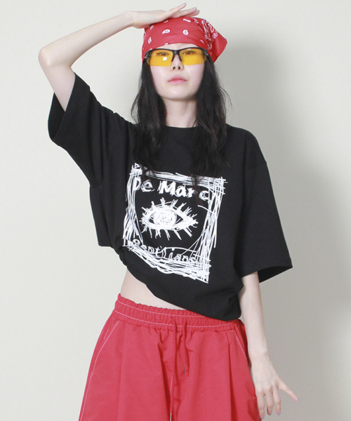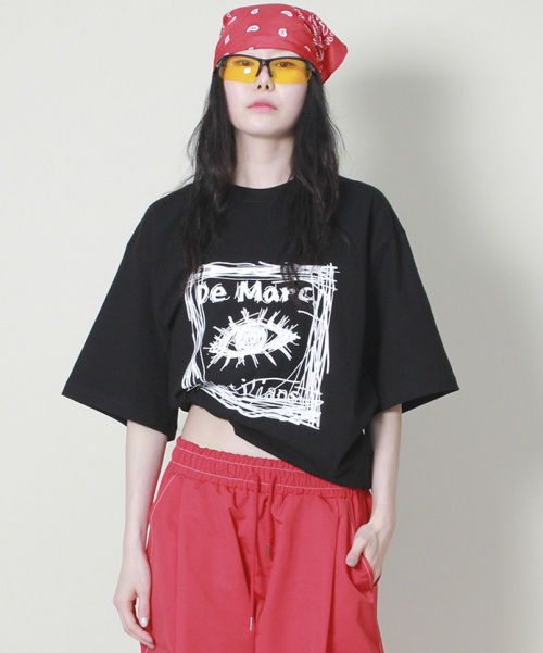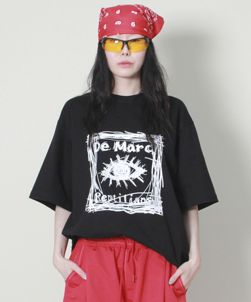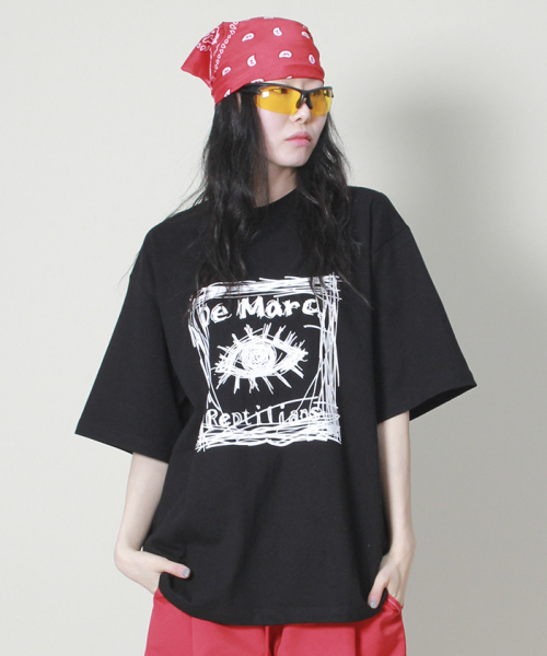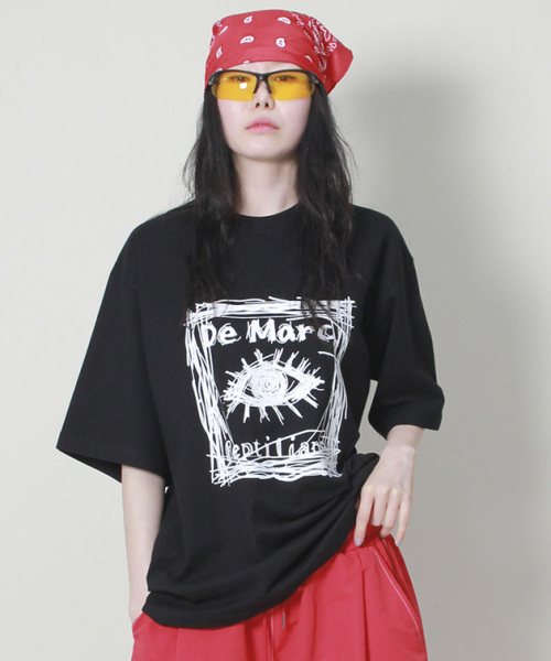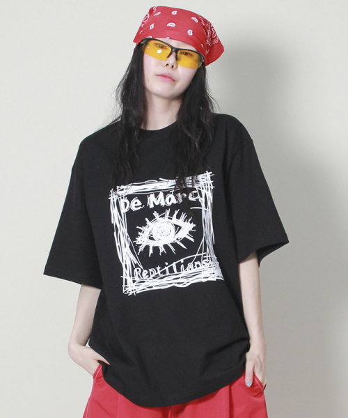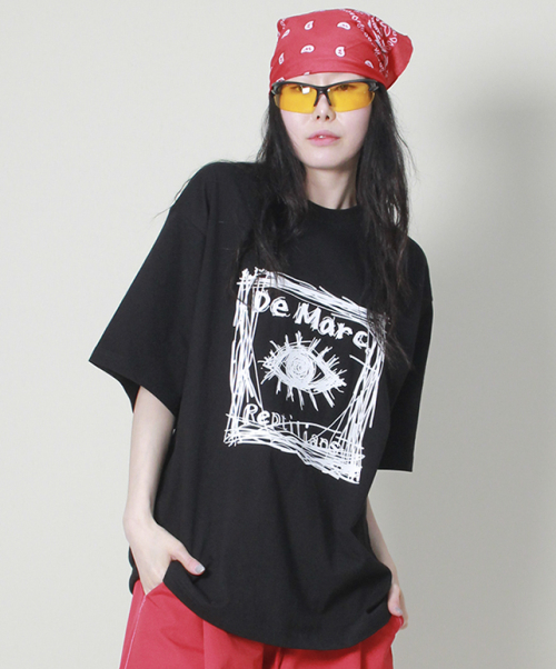 오버핏 스퀘어 로고 프린트 반팔 티셔츠입니다.