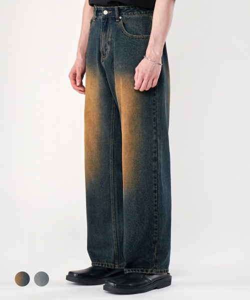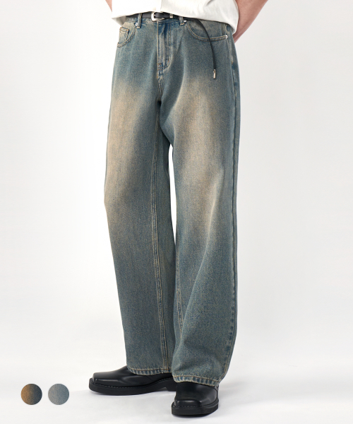 빈티지 프론트 워싱 와이드 청바지 데님 팬츠