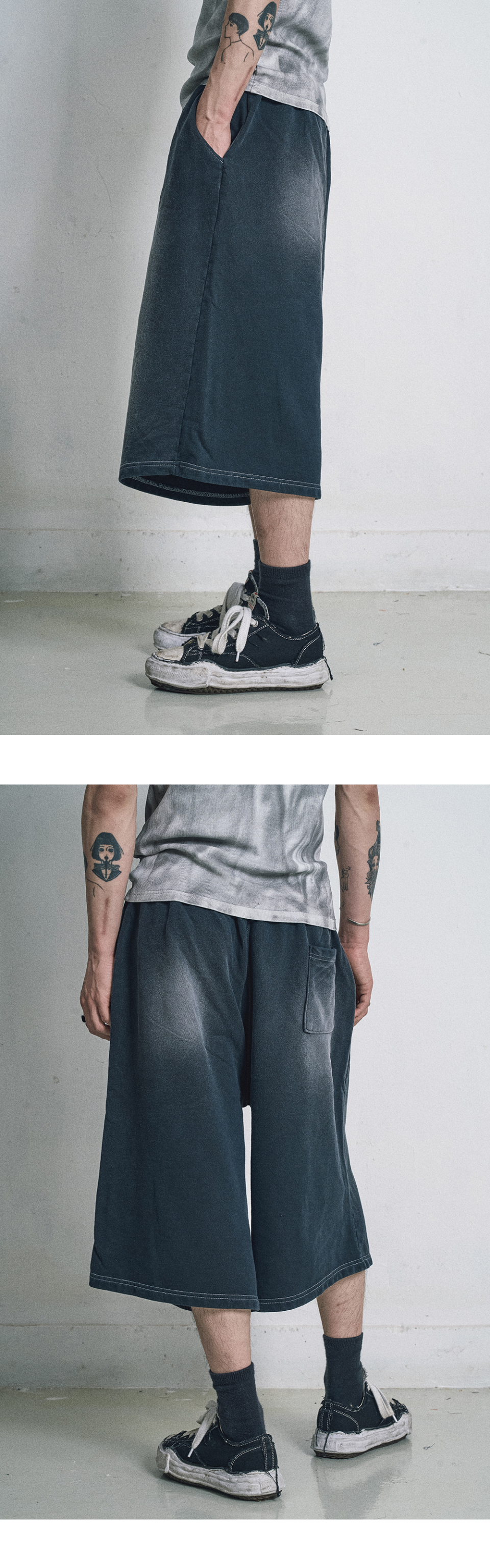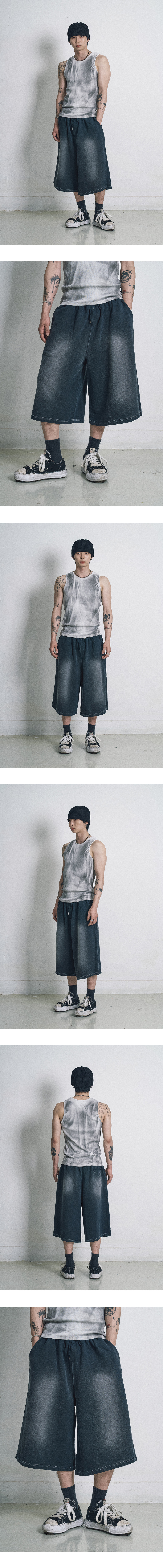 워시드 스웨트 버뮤다팬츠 - 블랙