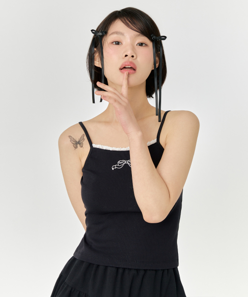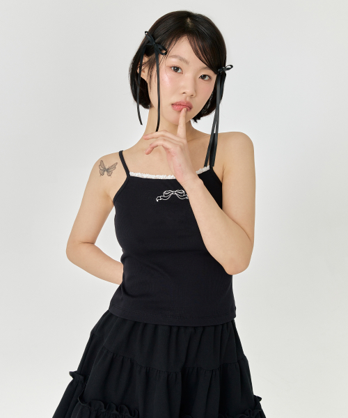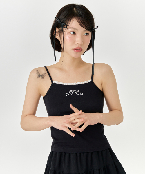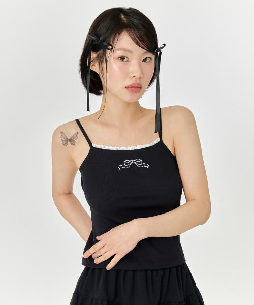 리본 나시 - 블랙