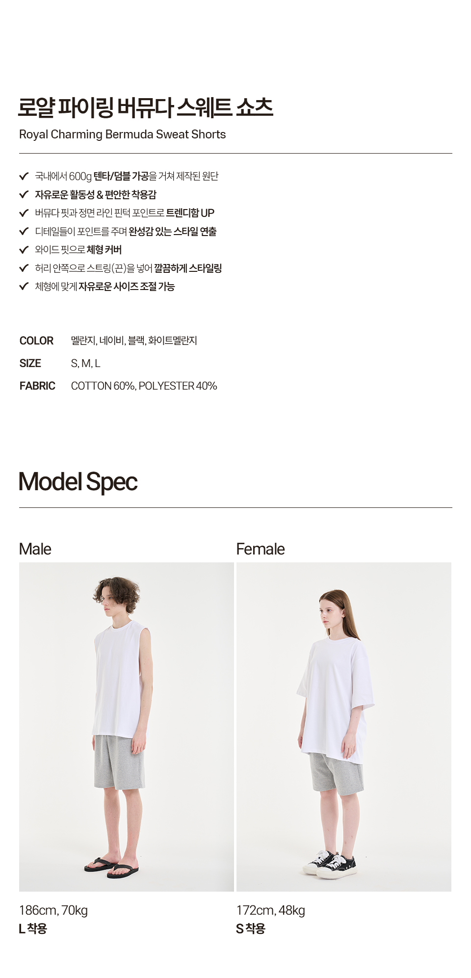 [2장 묶음 할인] 솔리드 카고 버뮤다 스웨트 쇼츠_4color 3size