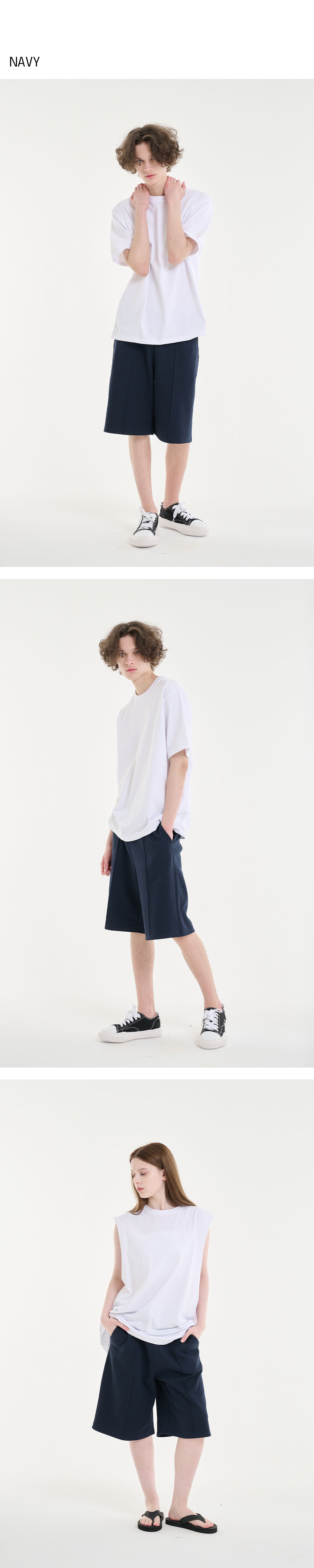 [2장 묶음 할인] 솔리드 파이링 버뮤다 스웨트 쇼츠_4color 3size