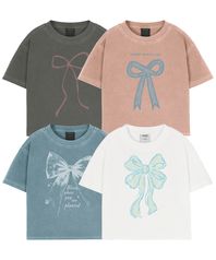 Hollysheesh 리본 그래픽 피그먼트 크롭 반팔 티셔츠_6 COL