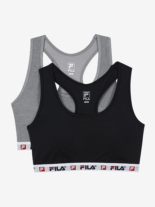 FILA리니어 로고와 박스 로고를 사용한 아웃밴드가 젊은 감성과 트렌디한 느낌을 주는 온라인 단독 스포츠브라 2매입 패키지 제품입니다.
