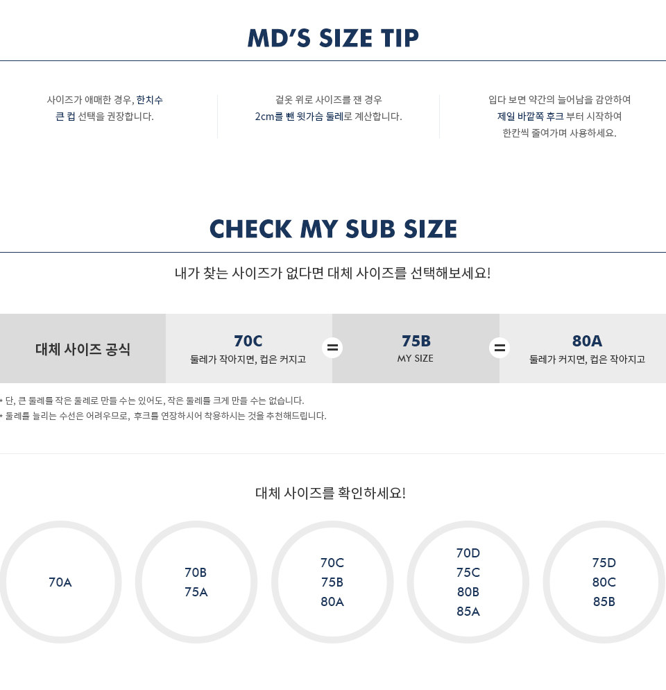 90사이즈 : 75C / 80A / 80B