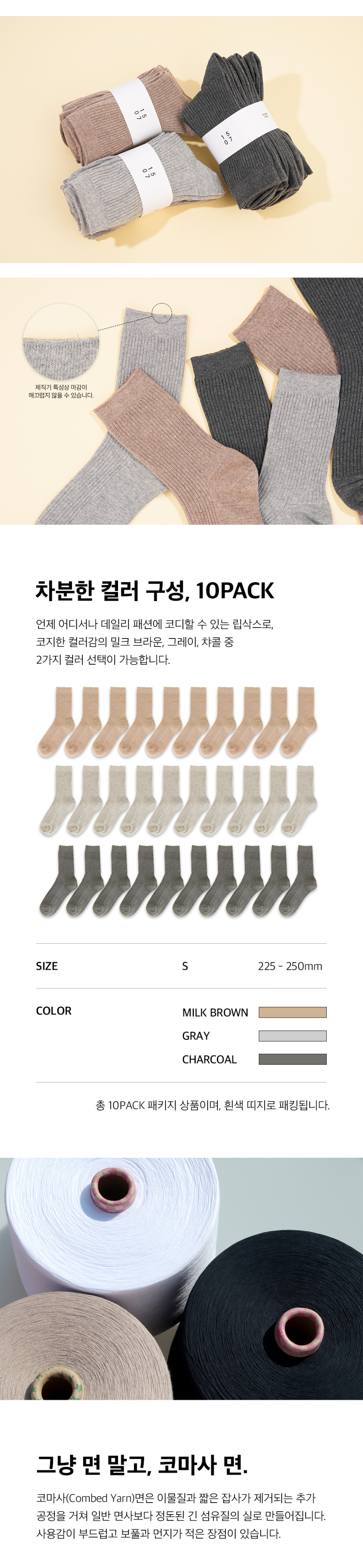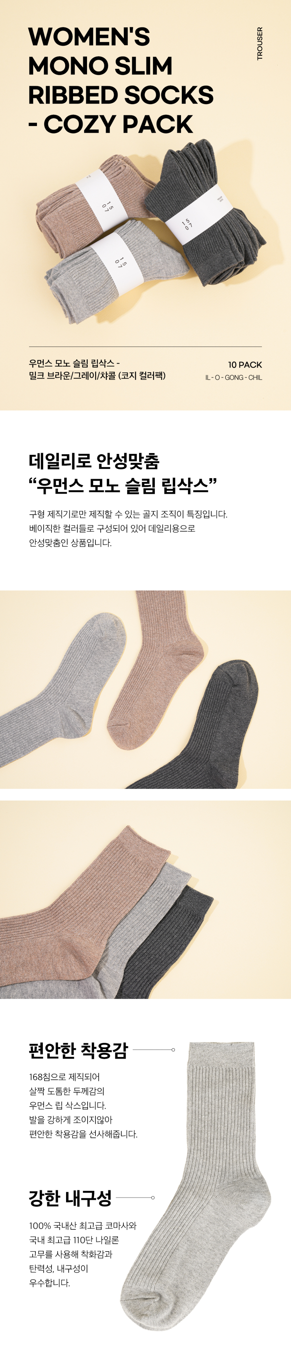[10PACK] 1507 우먼스 모노 슬림 립삭스 - 밀크브라운/그레이/챠콜(코지 컬러팩)