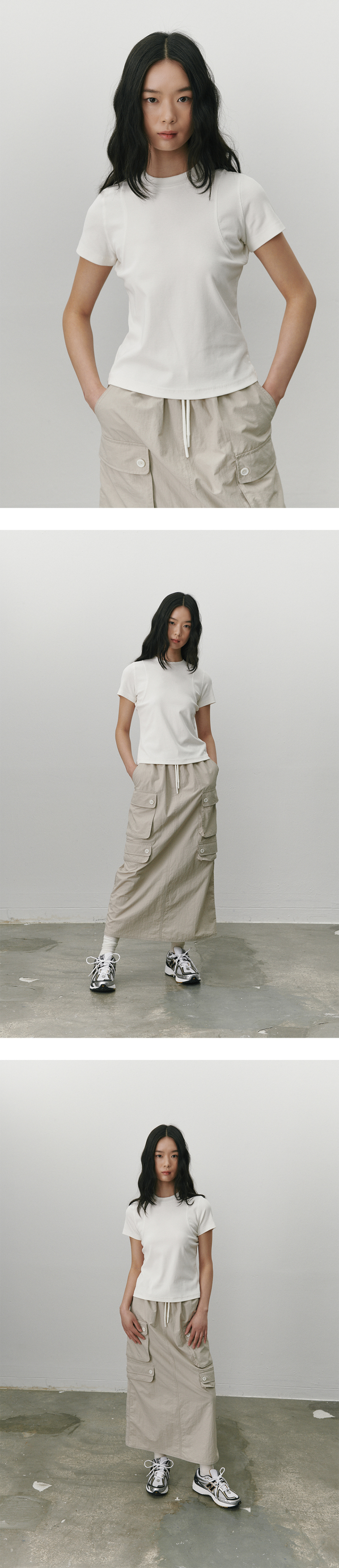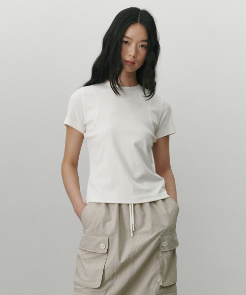 셔링 스트래치 티셔츠 화이트