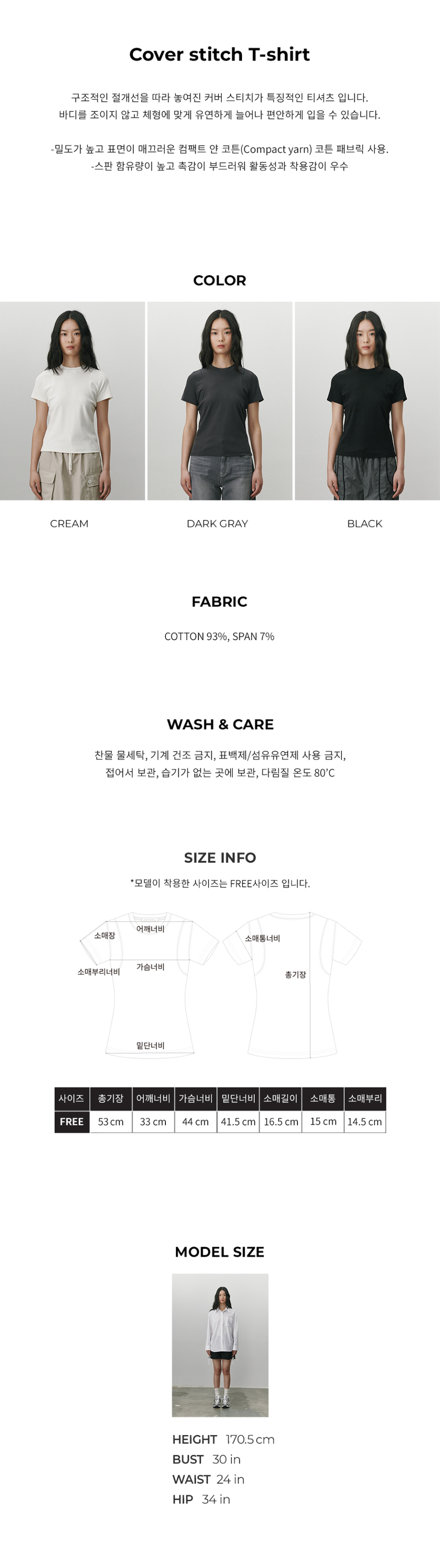 커버스티치 티 셔츠 블랙
