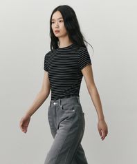 핀 스트라이프 티 셔츠 블랙