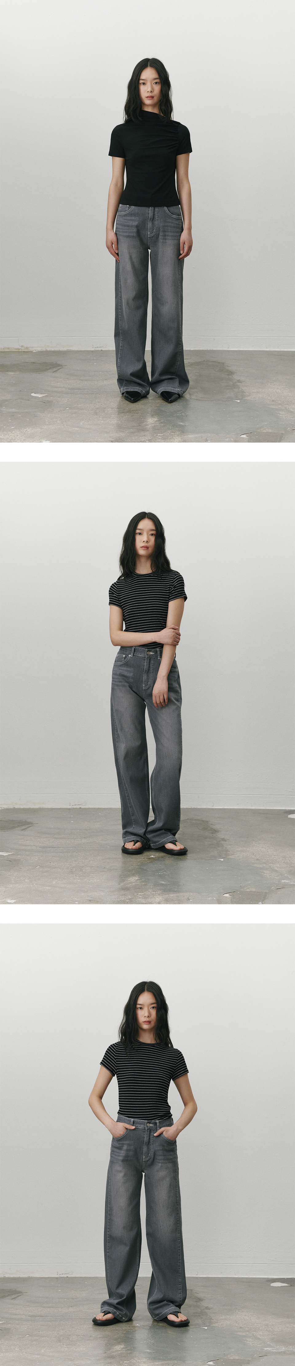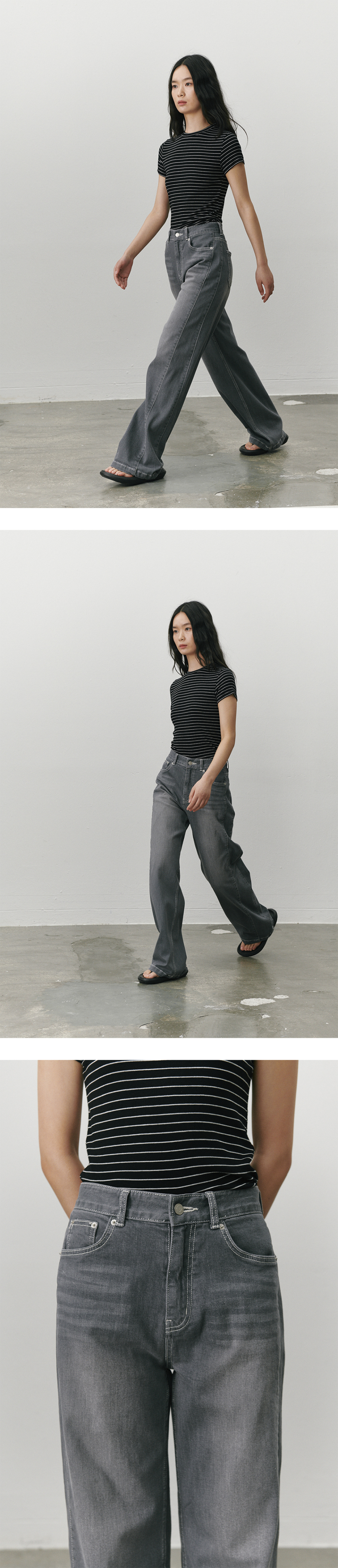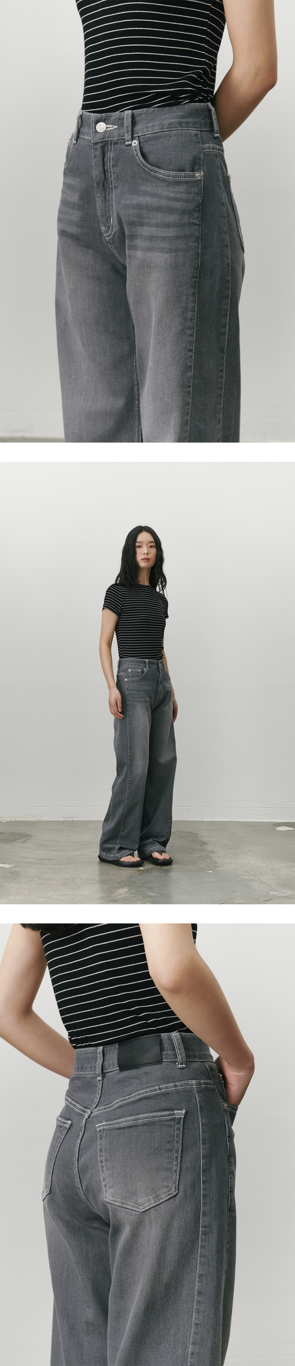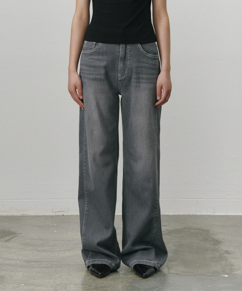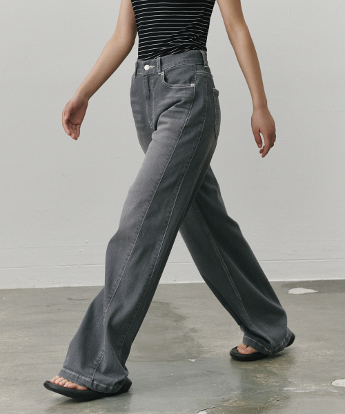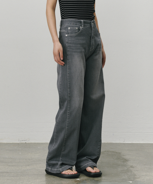 스트래치 더블심 와이드레그 진 그레이