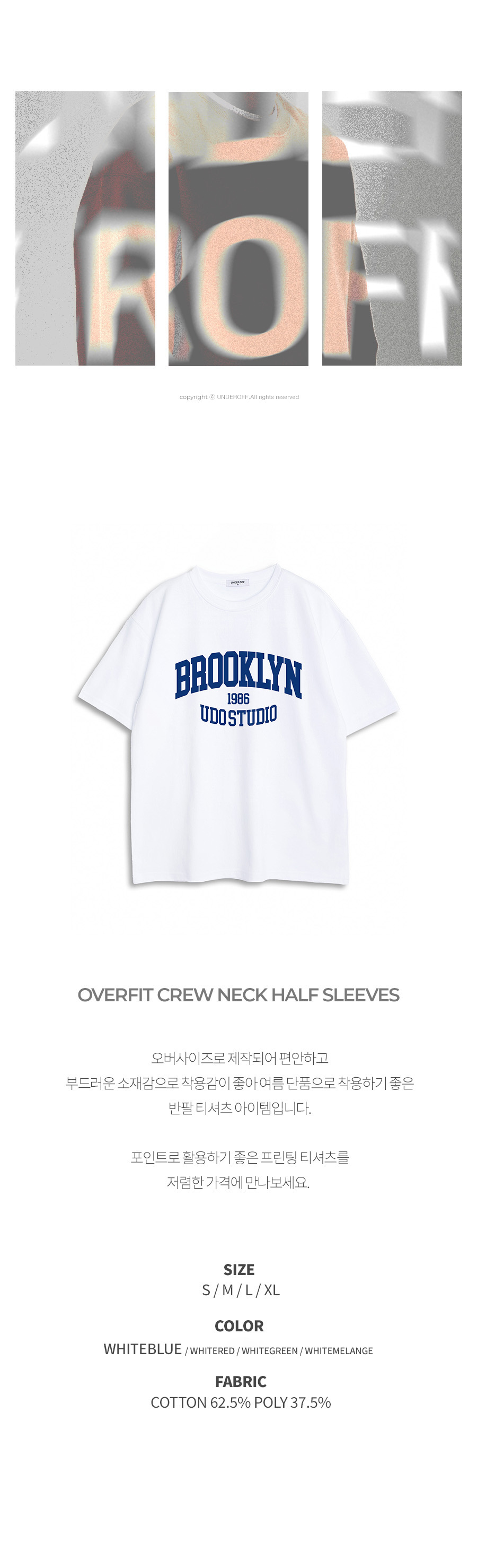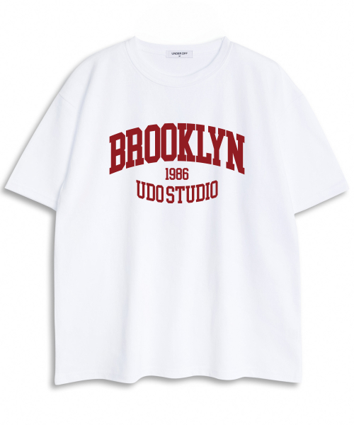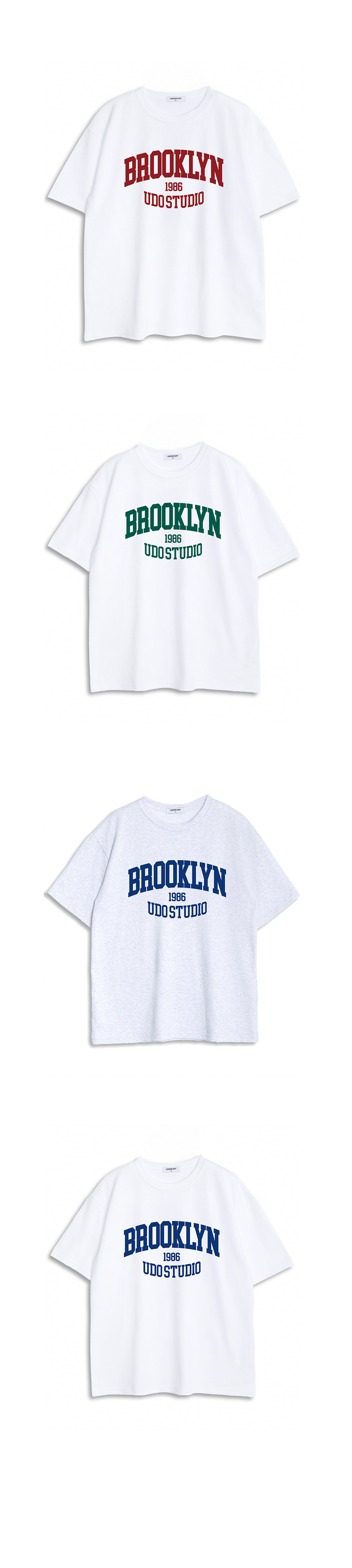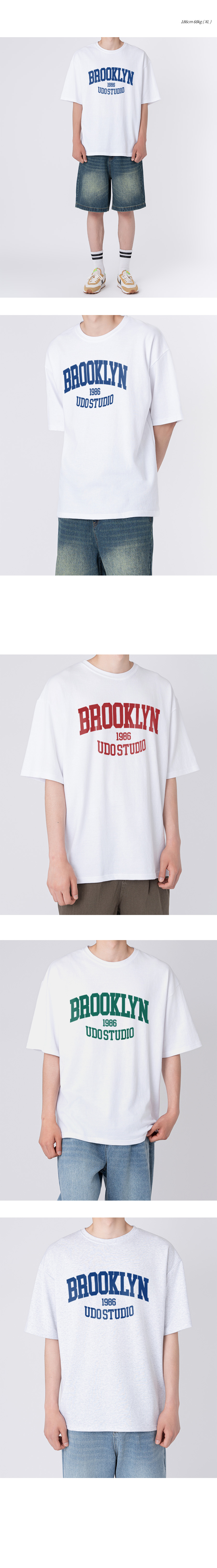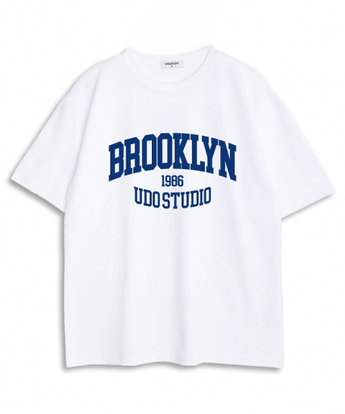 오버핏 크루넥 브루클린 반팔 티셔츠 화이트블루