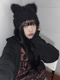 캣 퍼 이어플랩 비니 - 아이보리, 베이지, 차콜, 블랙