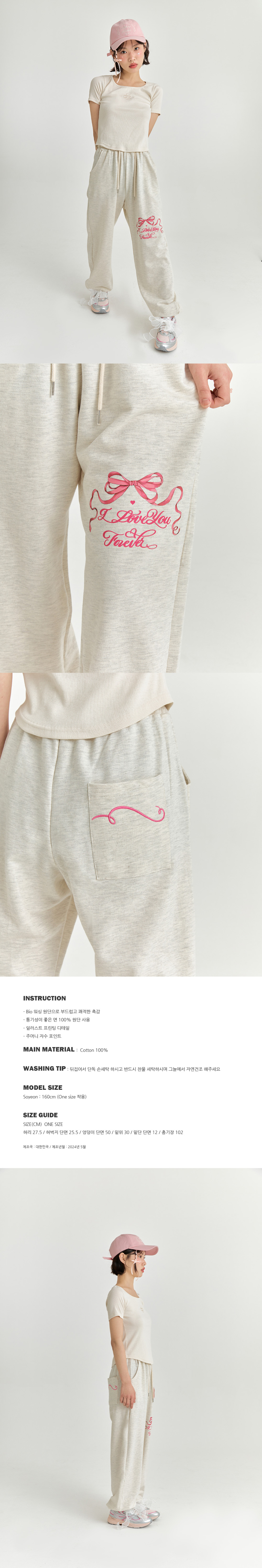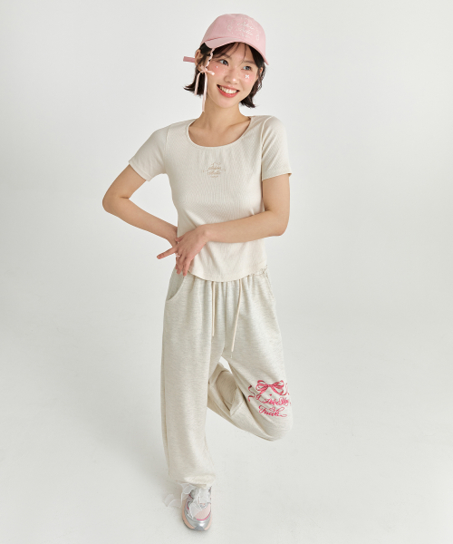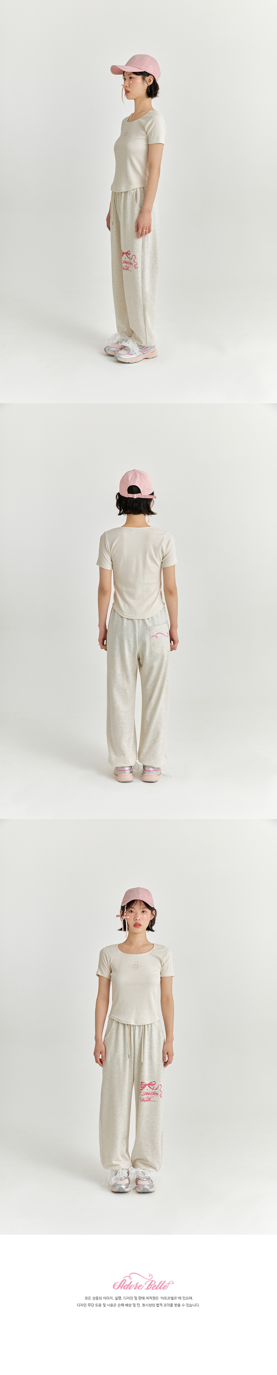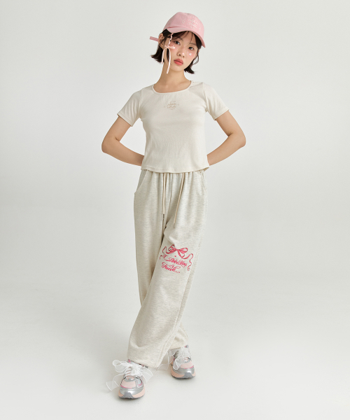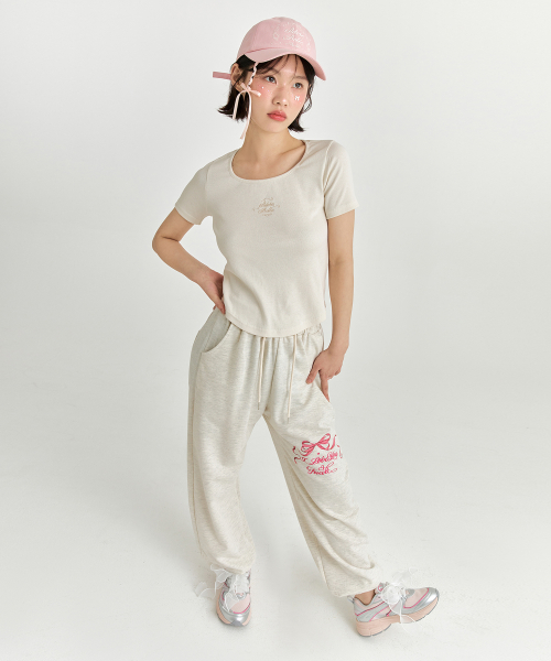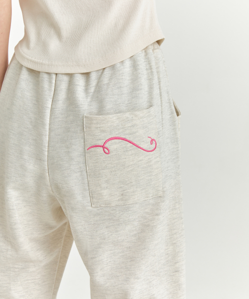 핑크 리본 조거팬츠 - 멜란지 베이지