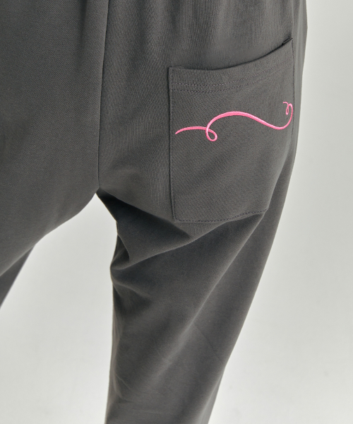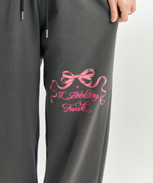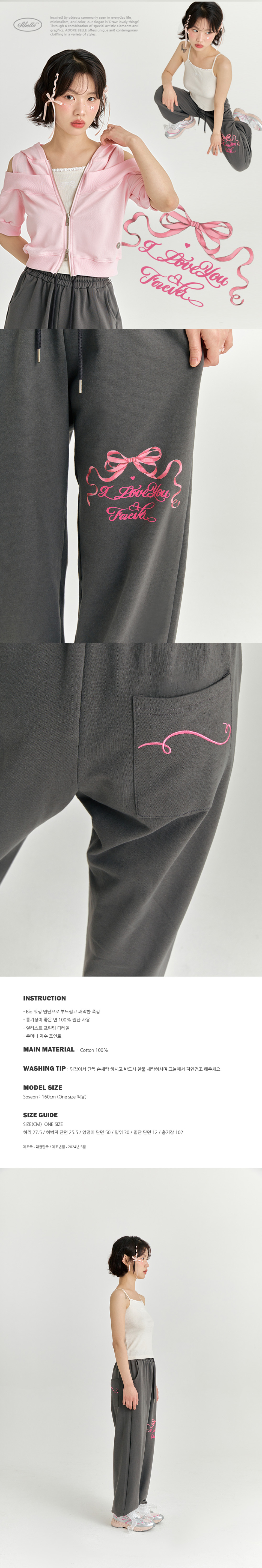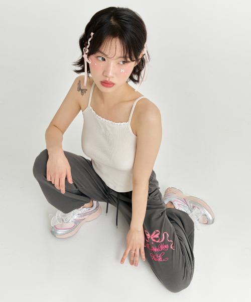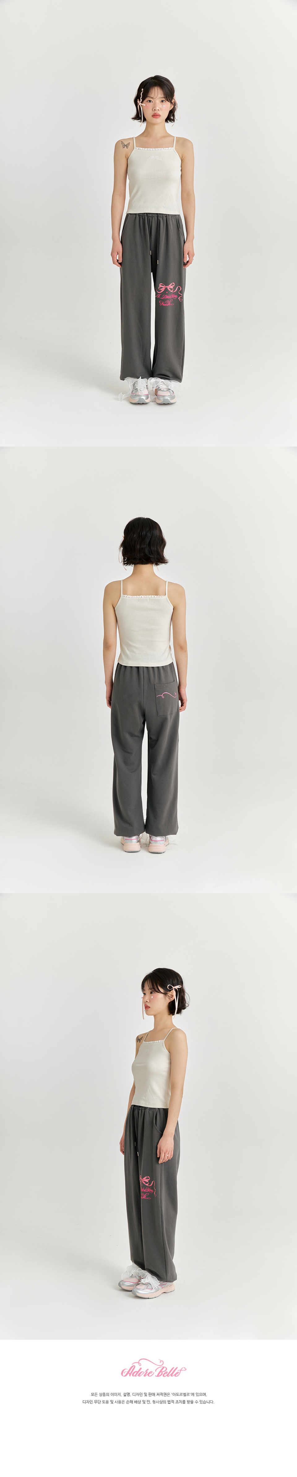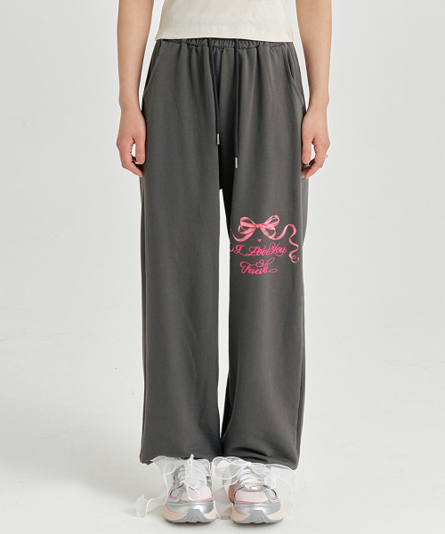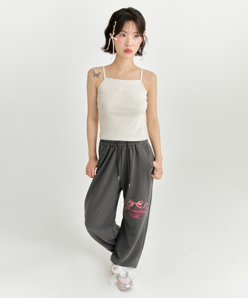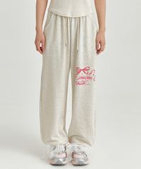 핑크 리본 조거팬츠 - 멜란지 베이지