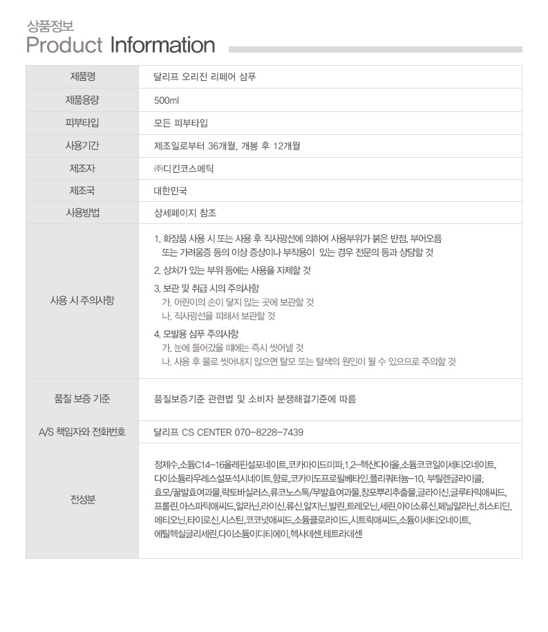 달리프 오리진 리페어 샴푸 500ml ,2개