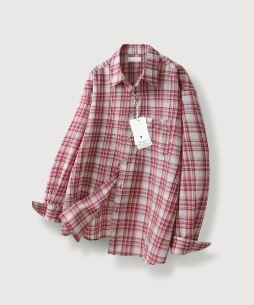 피치 밀크 체크 셔츠_Red
