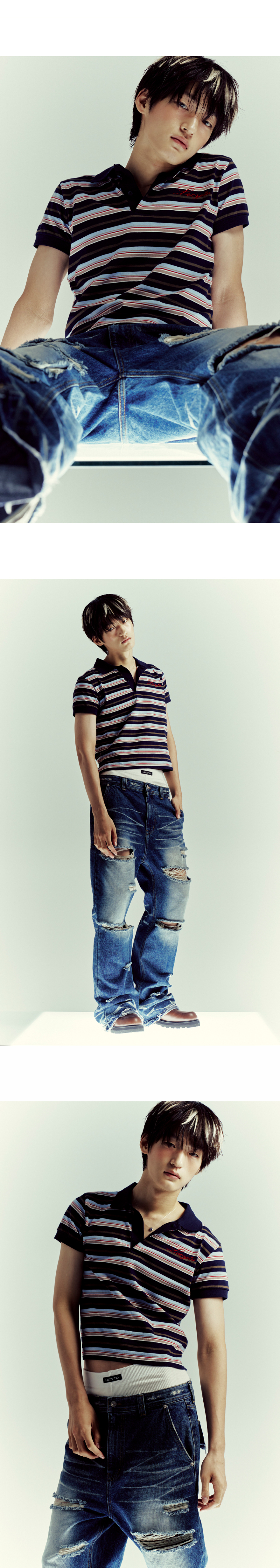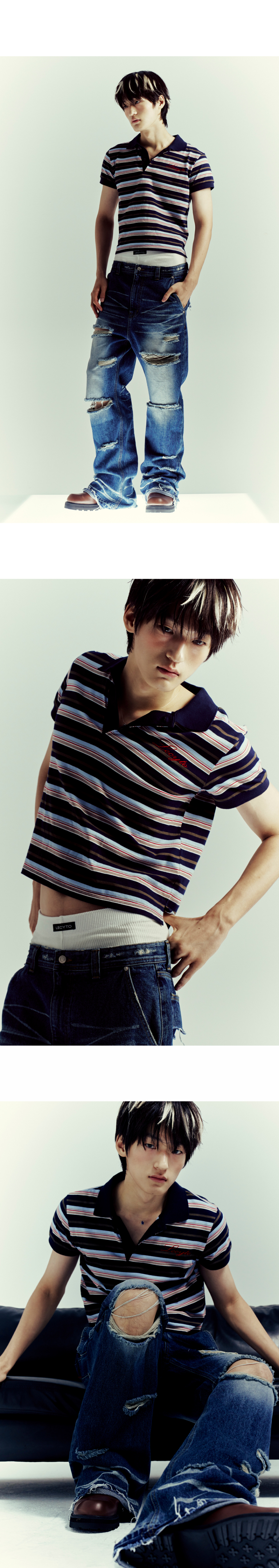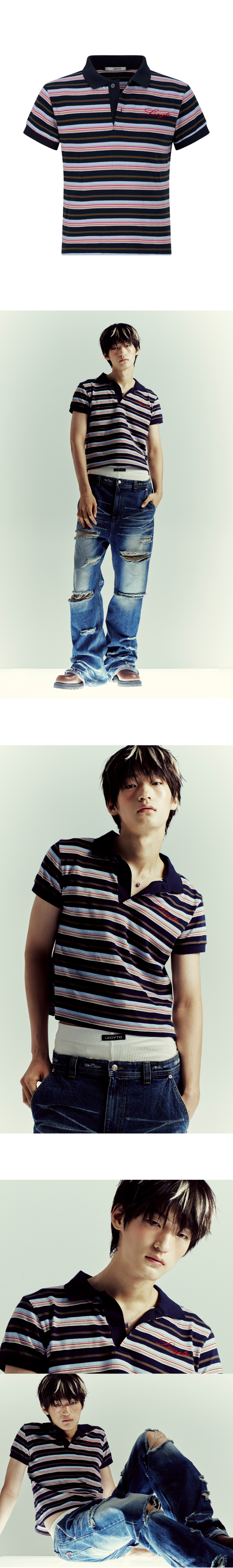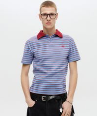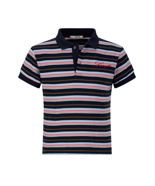 스트라이프 크롭 폴로 티셔츠 블루