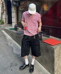 MJ S2 01 M.C UNISEX, Stripe PK Half Shirt / Pink