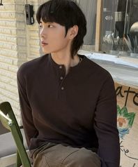 와플 헨리넥 크롭 티셔츠 [브라운]