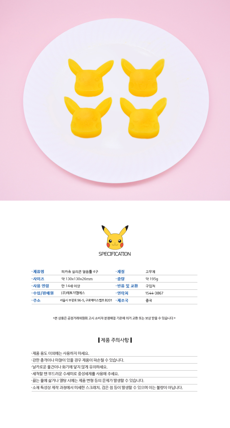 포켓몬 피카츄 실리콘 얼음트레이 얼음틀 4구