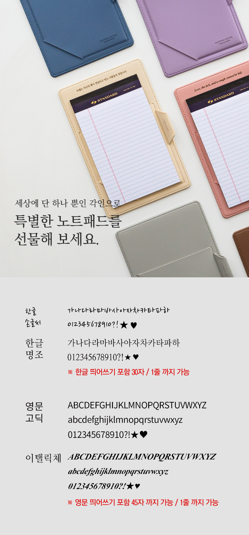 [각인] 가죽 리갈패드 노트패드 홀더 커버 A5/A4 6color