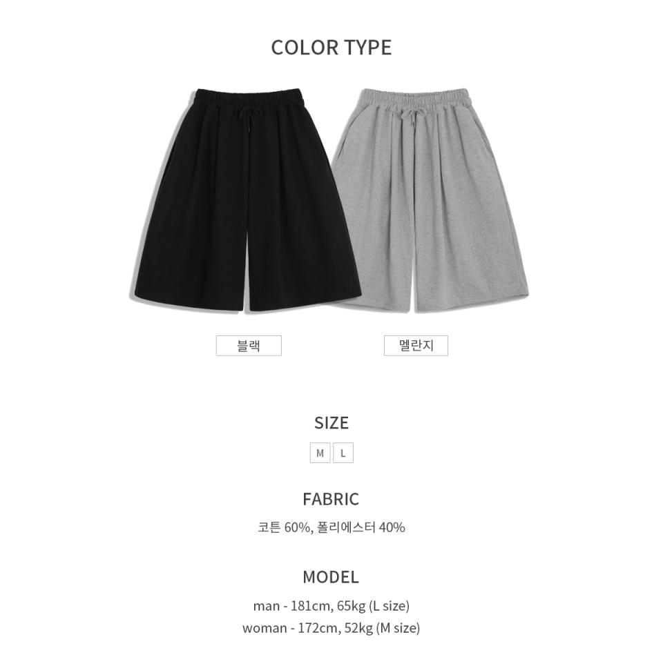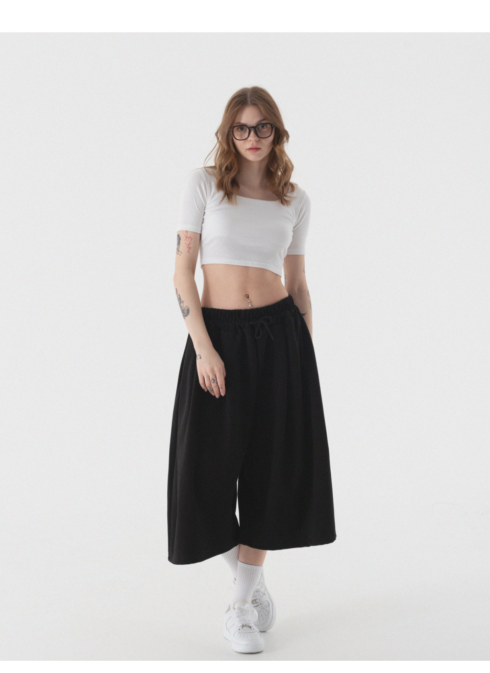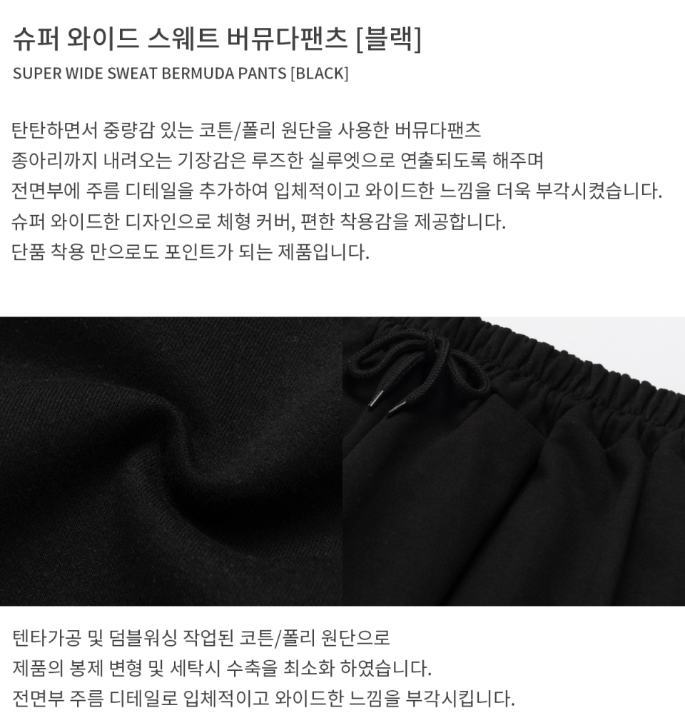 슈퍼 와이드 스웨트 버뮤다팬츠 (블랙)