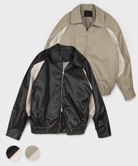 페이크 레더 배색 바시티 오버핏 블루종 자켓 점퍼_2COLOR