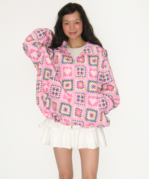 FLOWER PATTERN HOOD ZIP-UP WHITE