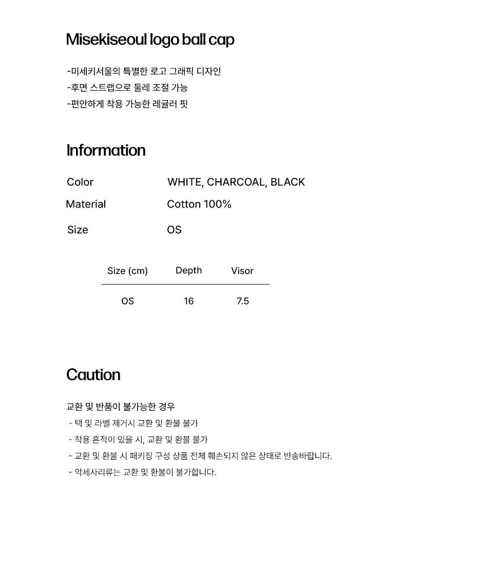 Misekiseoul logo ball cap CHARCOAL