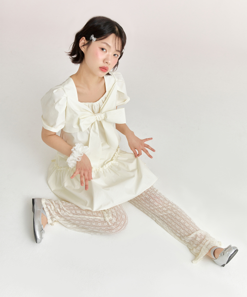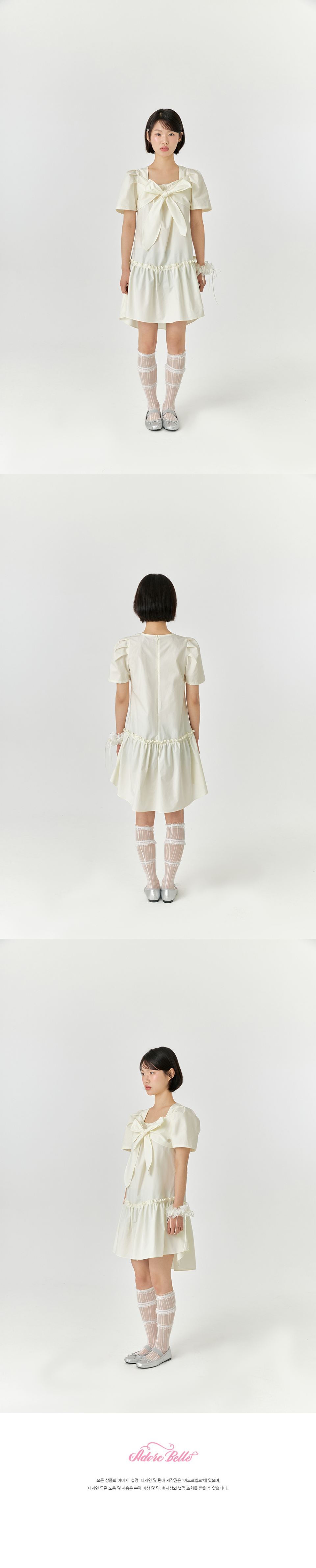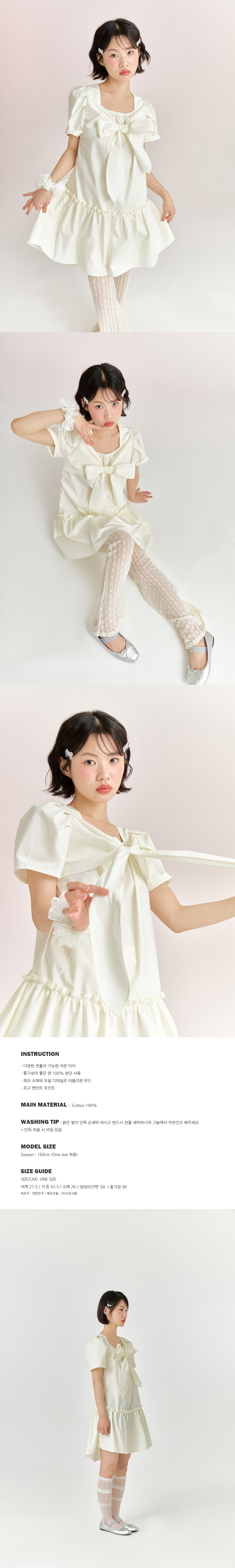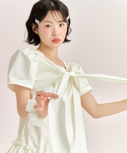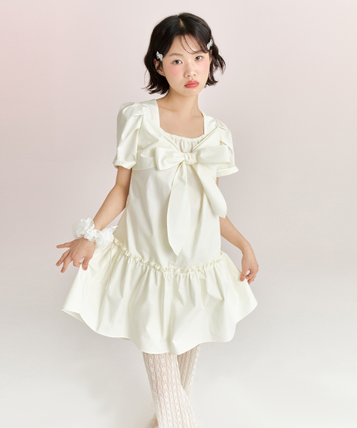 리본 타이 드레스 - 크림