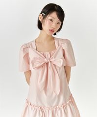 플라워 리본 벌룬 원피스 - 핑크