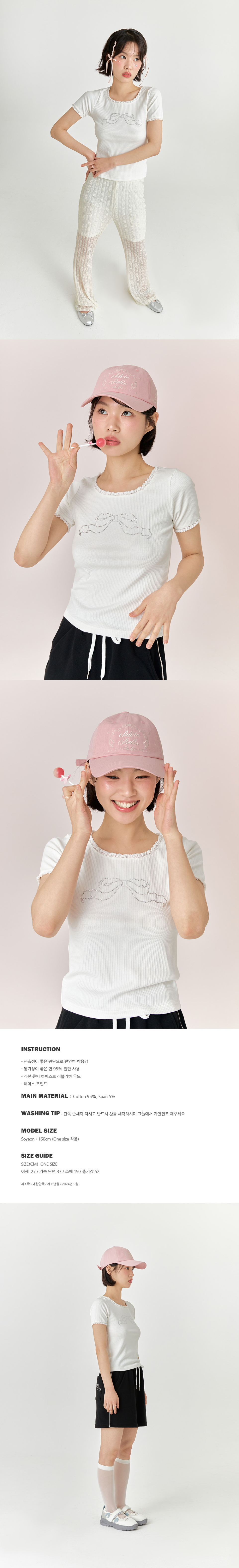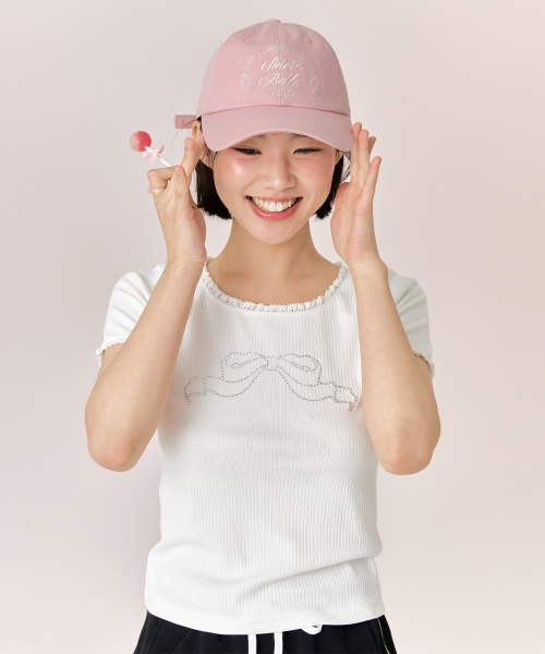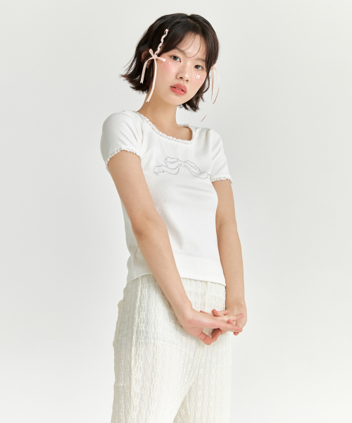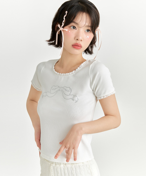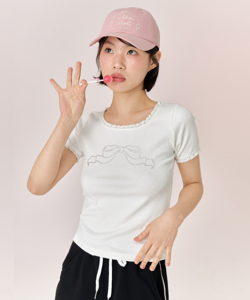리본 큐빅 티셔츠 - 화이트