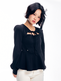 볼레로 플레어 리본 티셔츠 - 블랙