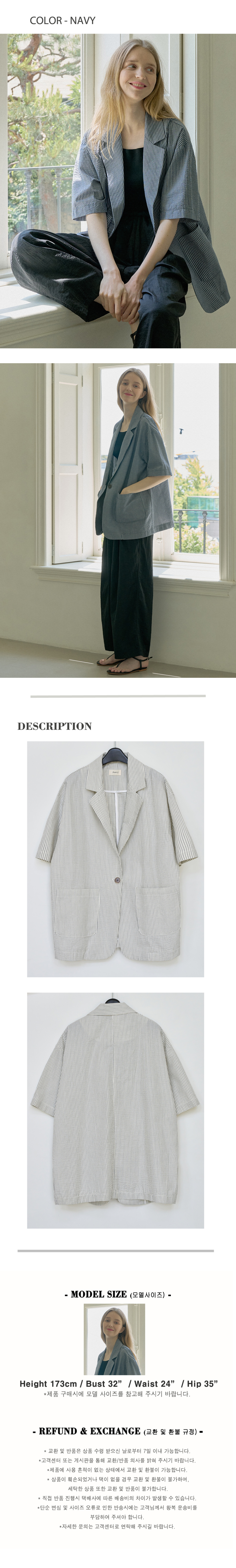 Stripe Overfit Short Sleeve Jacket - CREAM