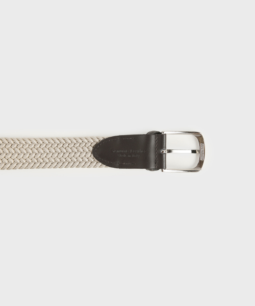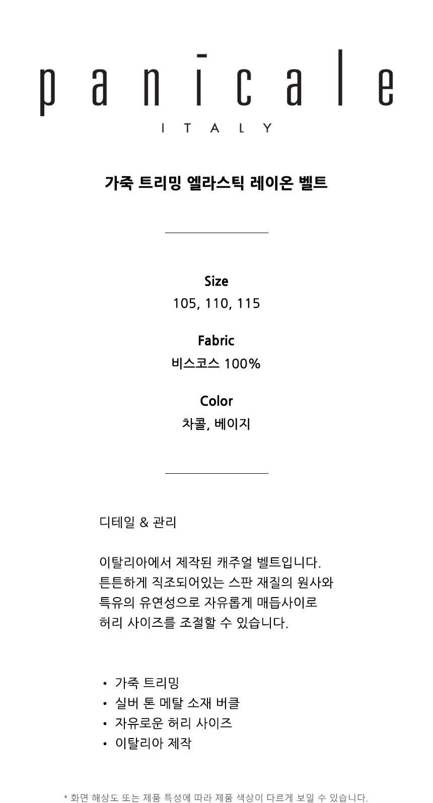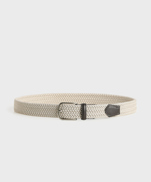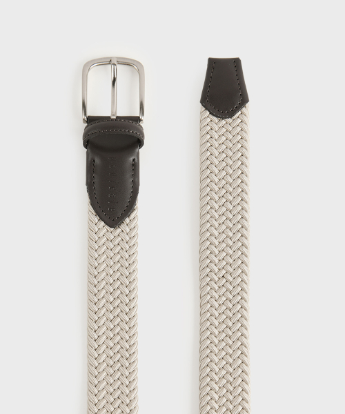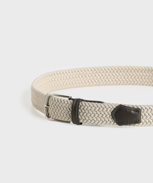 베이지 가죽 트리밍 엘라스틱 레이온 벨트