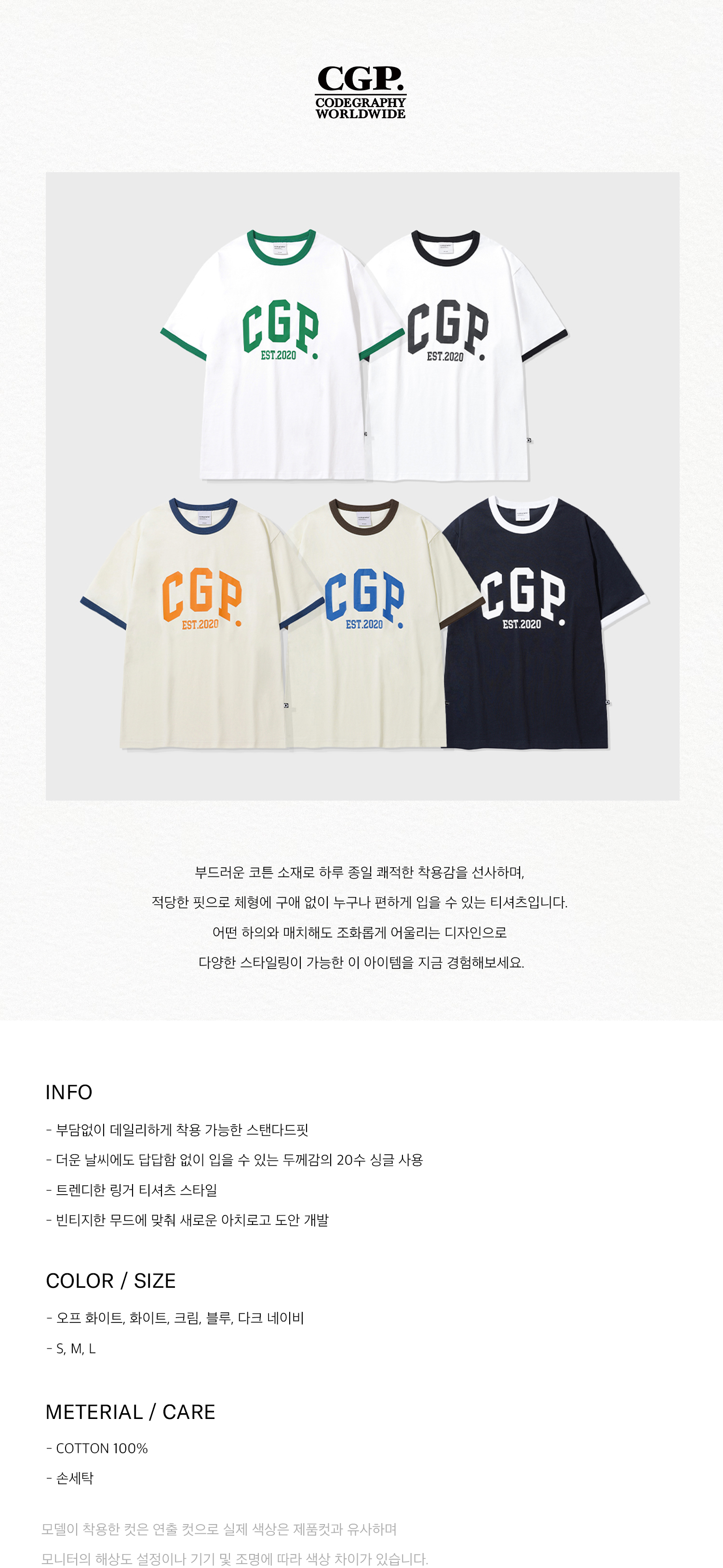 [링거Ver.] CGP 아치 로고 티셔츠_5COLOR