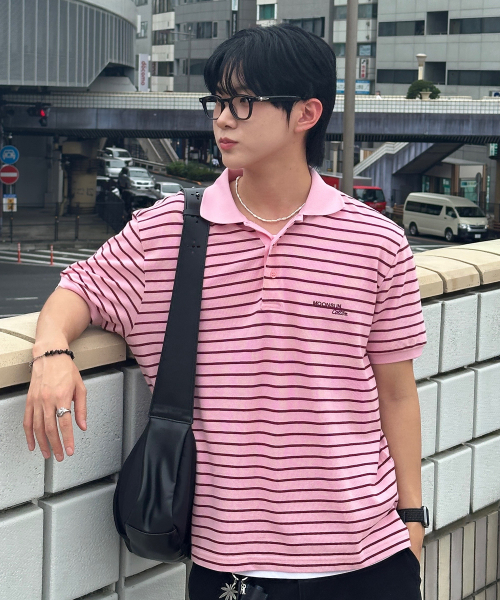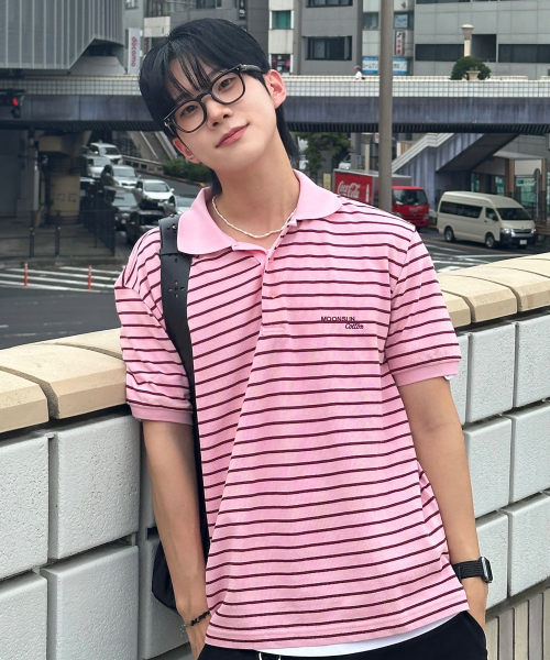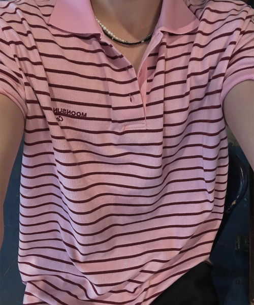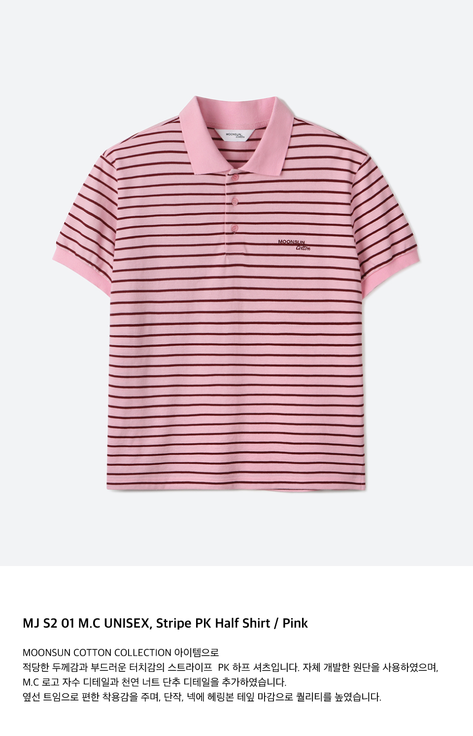 MJ S2 01 M.C UNISEX, Stripe PK Half Shirt / Pink