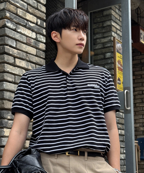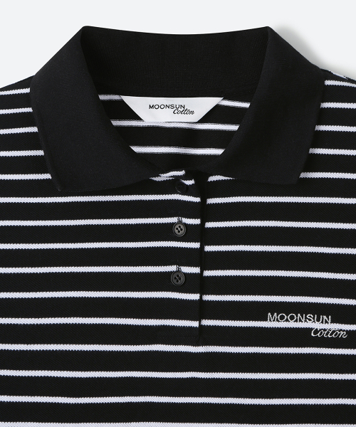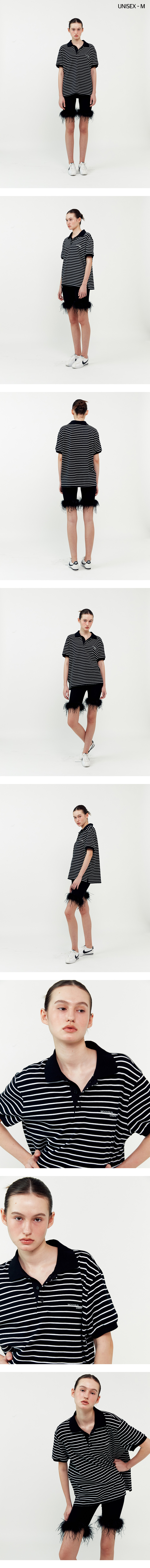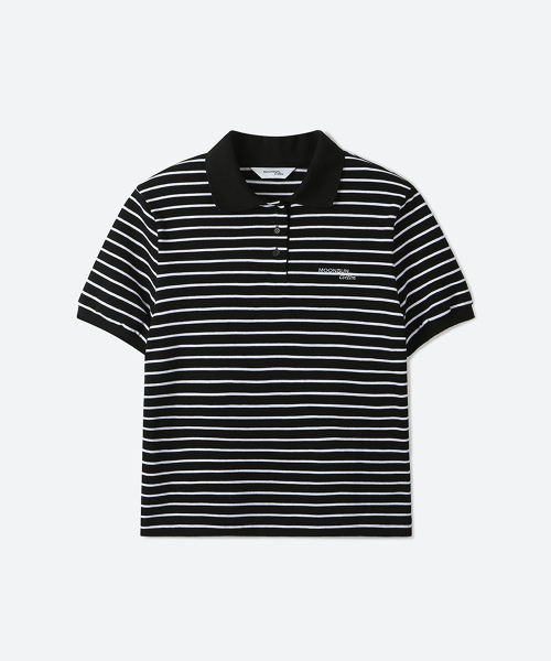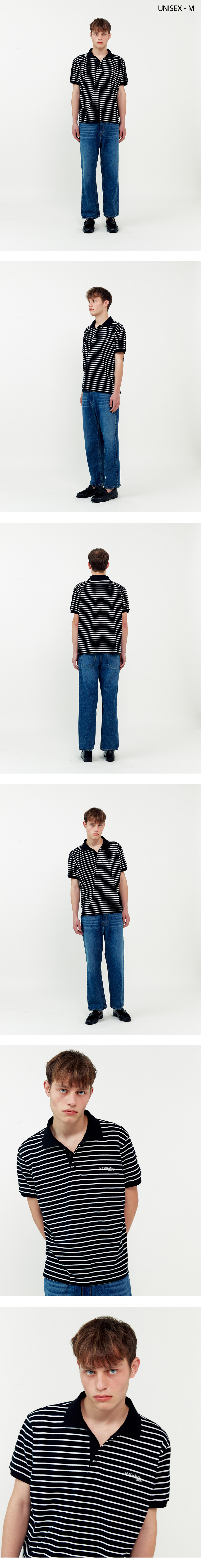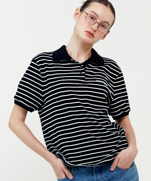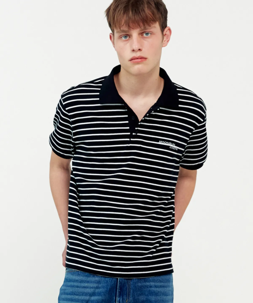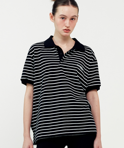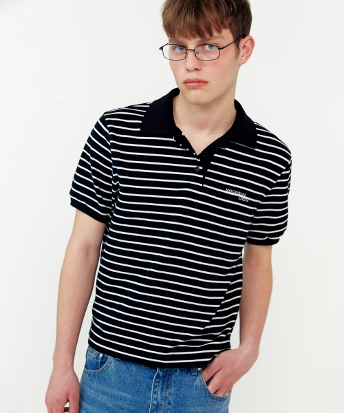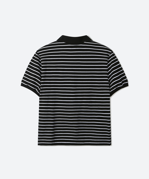 01 M.C UNISEX, Stripe PK Half Shirt / Black