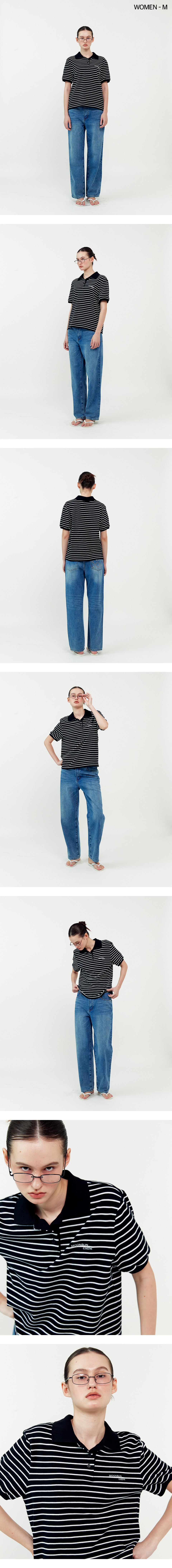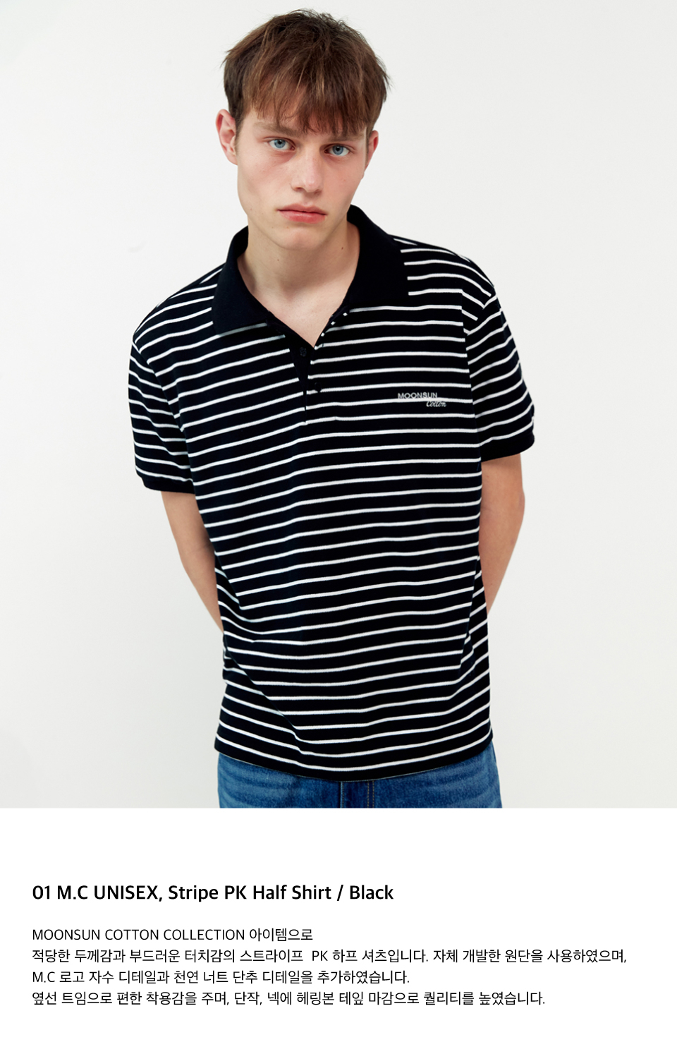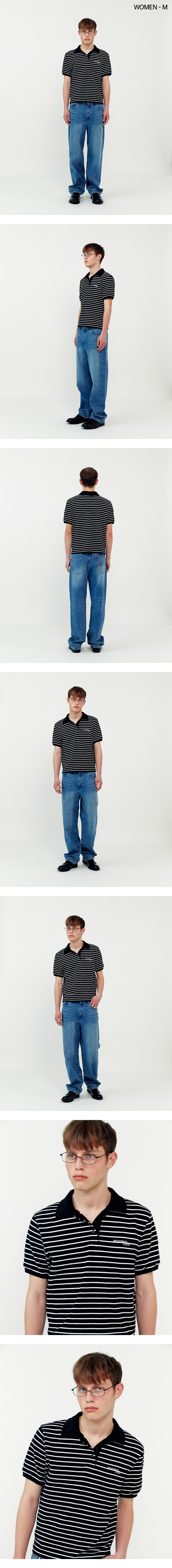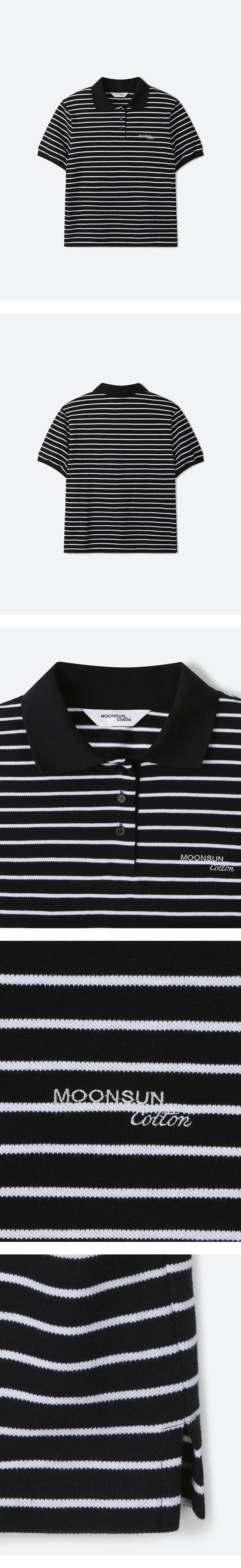 01 M.C UNISEX, Stripe PK Half Shirt / Black