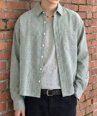 크롭 체크 긴팔 셔츠 민트