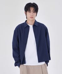 데일리 시어서커 체크 크롭 셔츠 네이비