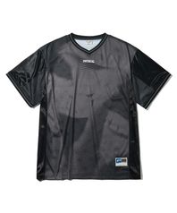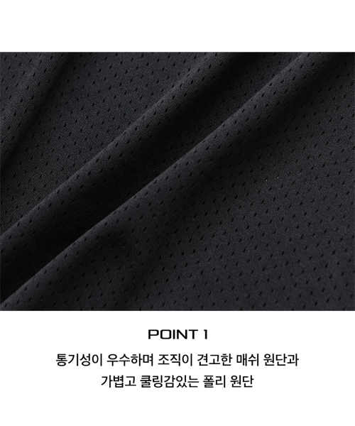 머쉬룸 메쉬 새틴 믹스 반팔티셔츠_블랙