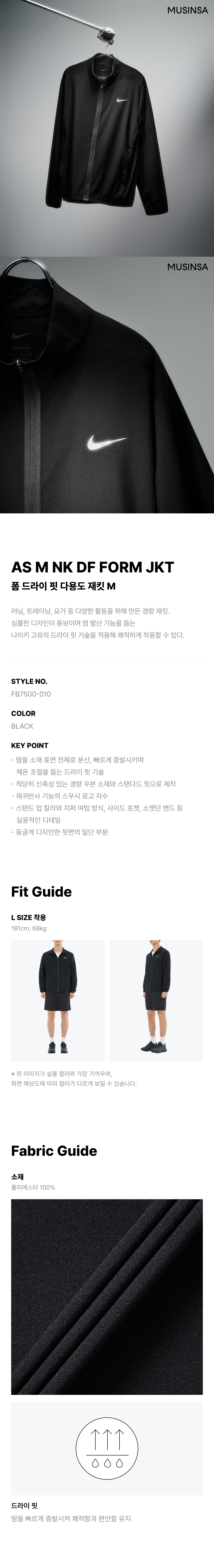 폼 드라이 핏 다용도 재킷 M - 블랙 / FB7500-010